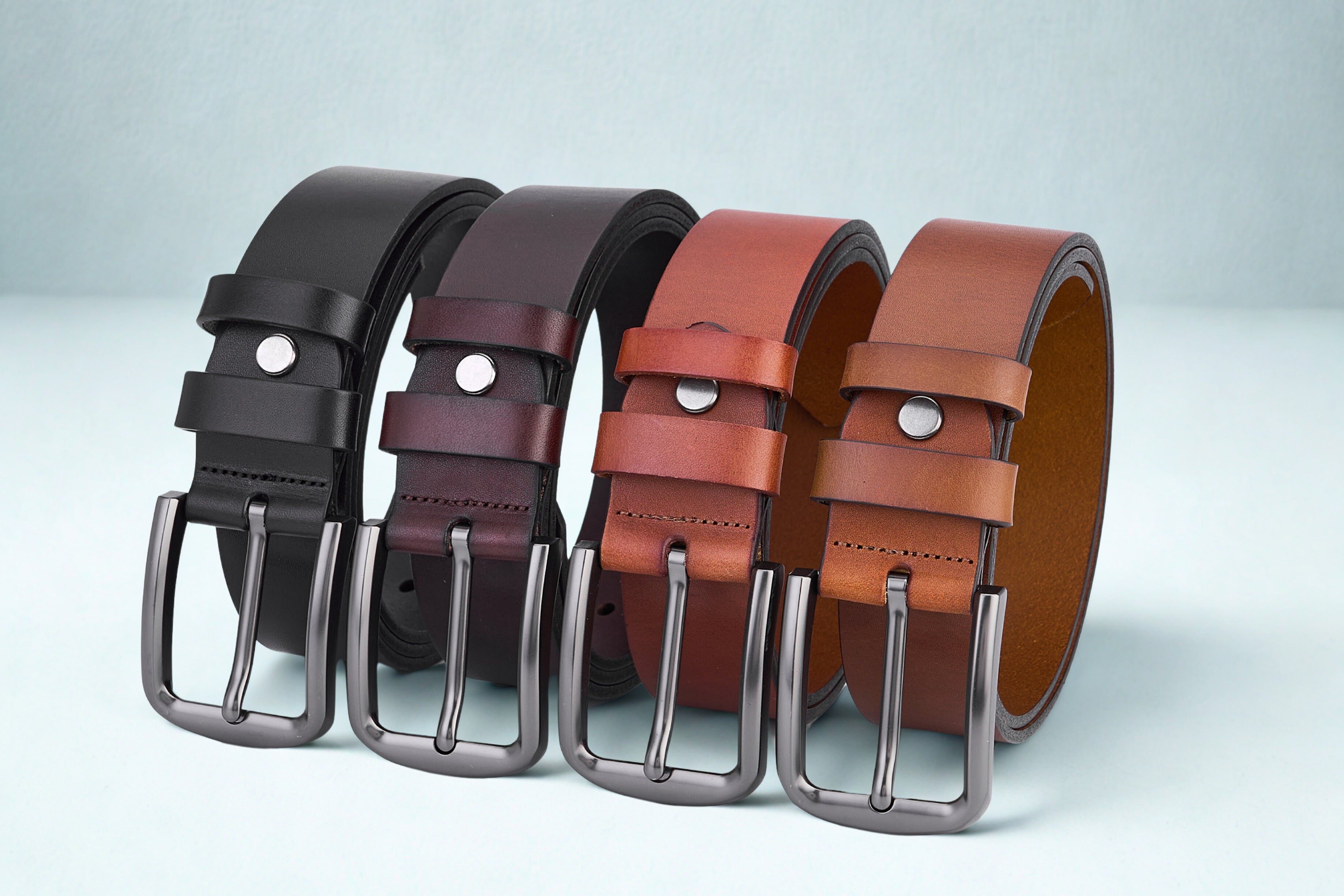 2 Stuks - Hoogwaardige Rundleer Riem - Zwart & Cognac - Volledig Leer - Duurzaam - Premium Lederen Broekriem - Duurzame Riemen Heren